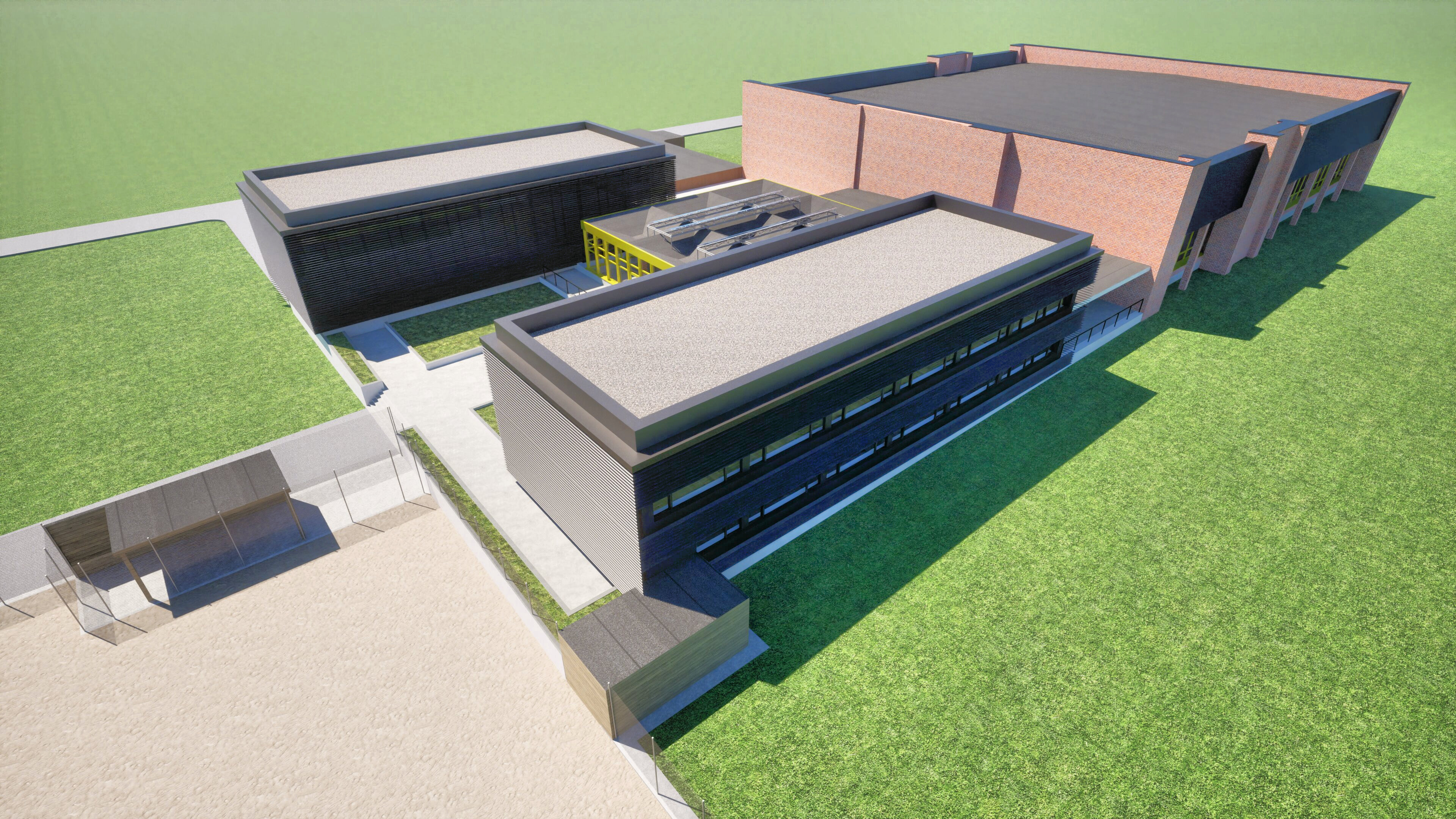 V příloze naleznete vizualizace areálu haly s rozšířením o ubytovací část a část tělocvičen.
