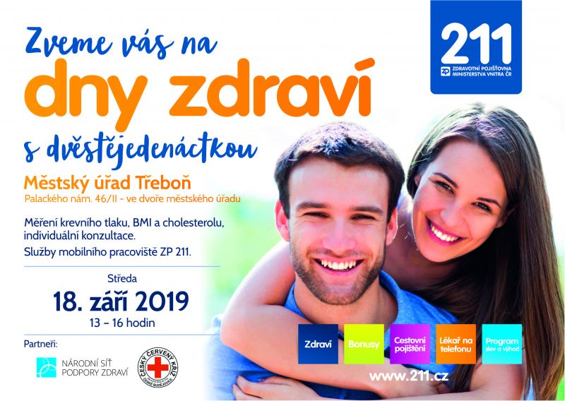 Zdravotní pojišťovna Ministerstva vnitra ČR srdečně zve na Dny zdraví s dvětstějedenáctkou. Akce se uskuteční 18. září od 13.00 do 16.00 hodin na nádvoří Městského úřadu v Třeboni.