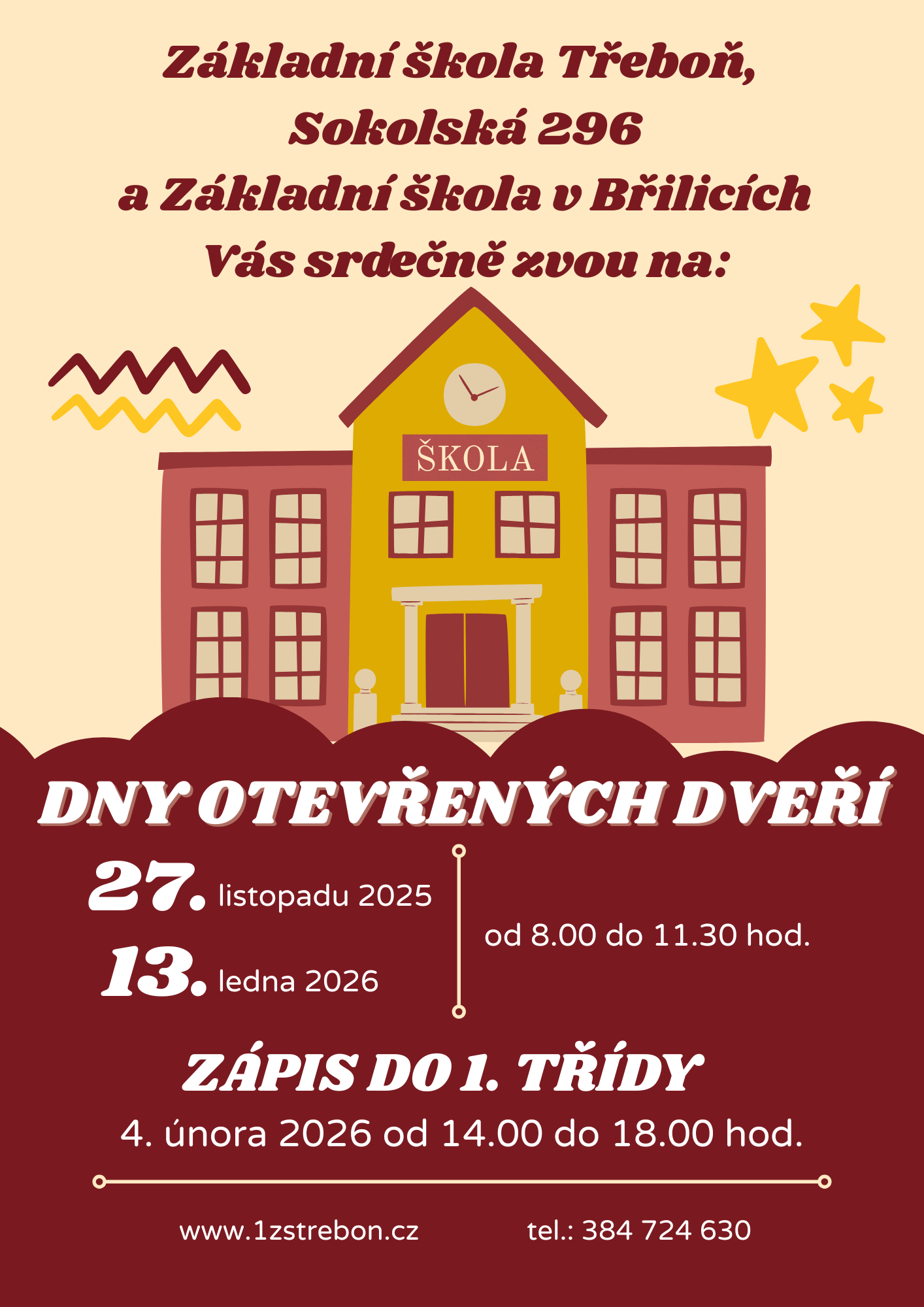 Více informacíZveme Vás na dny otevřených dveří ve dnech: 27. listopadu 2025 a 13. ledna 2026 vždy od 8.00 do 11:30 hod.